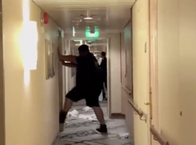 邮轮这么大,他又是醉酒的状态,别说自己的房间了,连门口都找不到,当场开始发酒疯。
