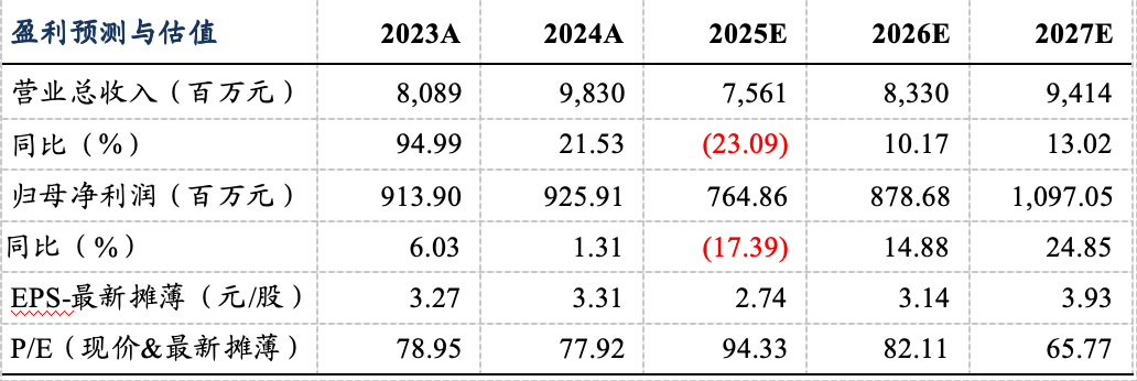 我们维持公司2025-2027年归母净利润为7.6/8.8/11.0亿元,当前市值对应PE为94/82/66倍,维持“买入”评级。
