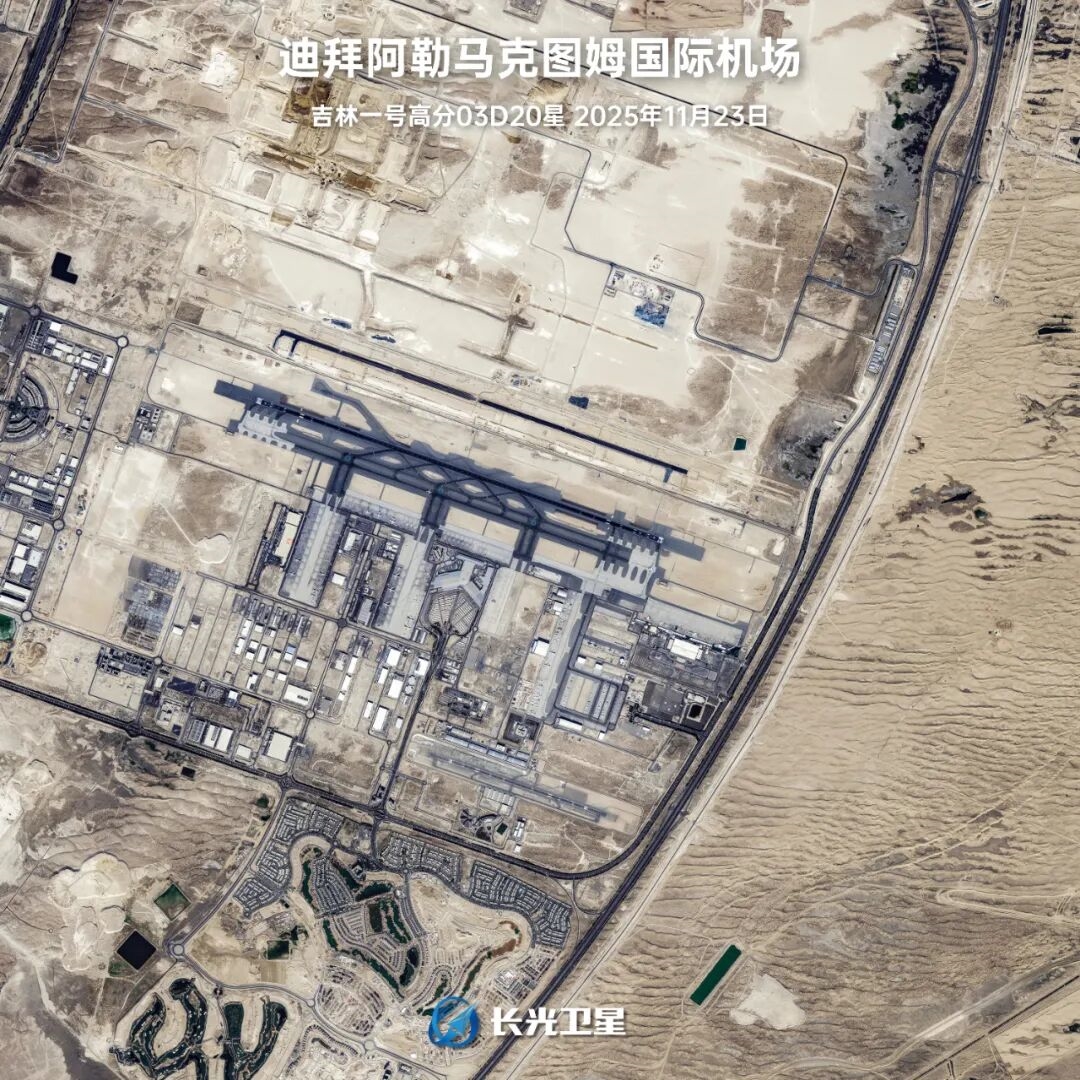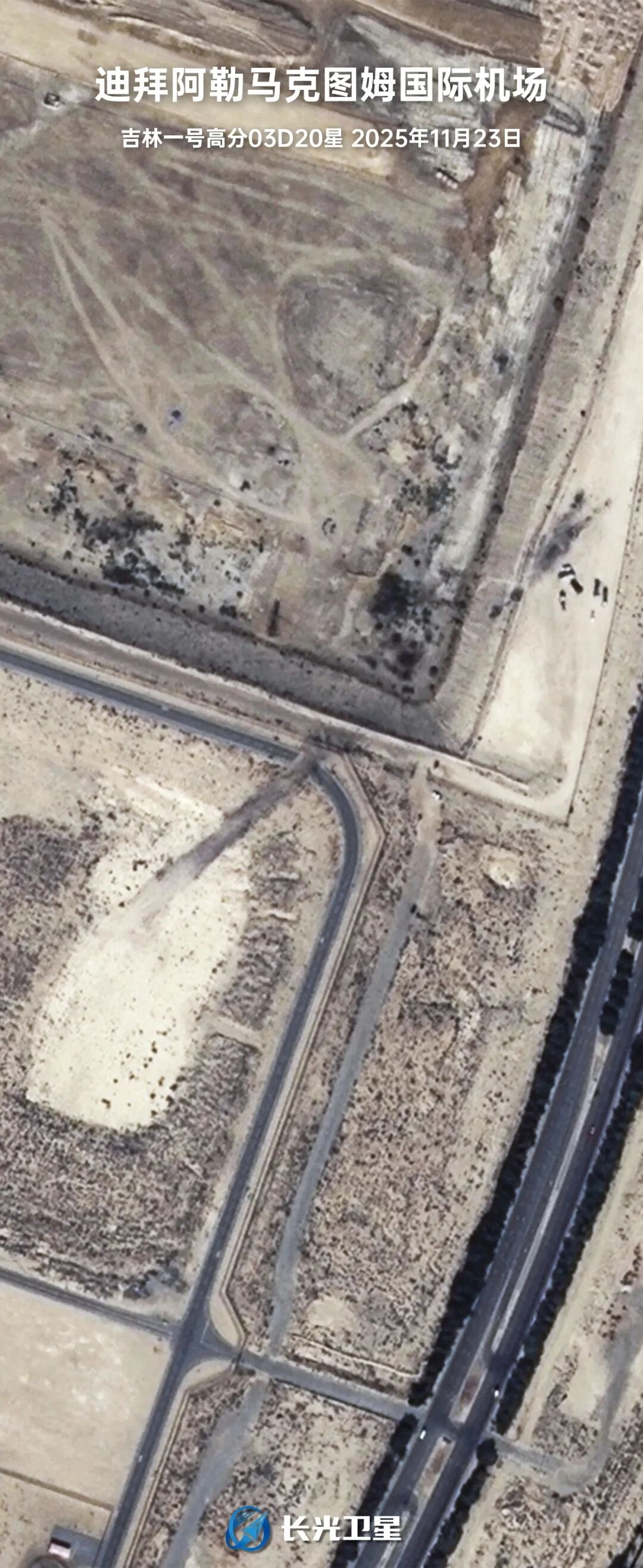 迪拜航展上印度“光辉”战机坠毁现场 在太空清晰可见 Source 当地时间11月21日下午2点10分左右(北京时间下午6点10分左右),2025年阿联酋迪拜航展最后一天,一架印度国产“光辉”战机在展演突然时坠毁,飞行员未能弹射,已确认遇难。 当时,这架战机正在航展上进行飞行表演,没想到在一次低空飞行时突然坠毁,在地面上擦出一道长长的痕迹之后,燃起大火,并冒出滚滚浓烟。 坠机地点距离航展核心区域大约1.6公里,是机场跑道周围的荒漠地带,没有造成地面人员伤亡。 远在太空的“吉林一号”卫星星座,在日常掠过中东上空的轨道任务中,无意间记录下了事故发生后现场的影像,可以清晰地看到坠机现场的大量残骸。