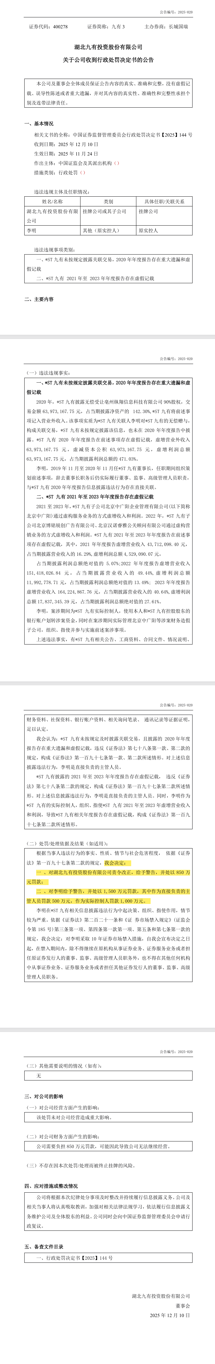 一家已经退市的公司(九有投资,以前叫*ST九有)和它的前老板(原董事长、实际控制人李明),因为以前干了不少“做假账”、“该说的不说”的事,现在秋后算账,被证监会狠狠罚了一顿。