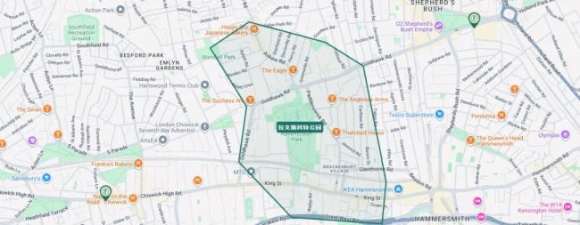 拉文斯科特公园位于伦敦哈默史密斯-富勒姆区(Hammersmith and Fulham),整个区域以占地21英亩的美丽的拉文斯科特公园为核心,也由此而得名。