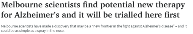 如今墨尔本科学家发现一种或能修复大脑损伤的新疗法,未来可能只需喷一喷鼻子,就能对抗老年痴呆等多种疾病!