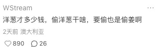 “离谱!这种就应该刚下去。他有什么证明洋葱是Coles的?你完全可以拒绝配合,大不了叫他报警,你看哪个警察会因为一个洋葱来。”