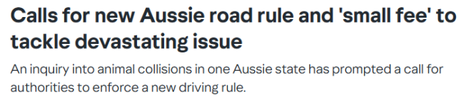 维州立法委员会(LCEIC)调查了全州的“路杀动物”情况后,立法机构正推动政府实施一项新的驾驶规定——未来司机在撞到野生动物后必须停车并提供救助,违者可能面临小额罚款。