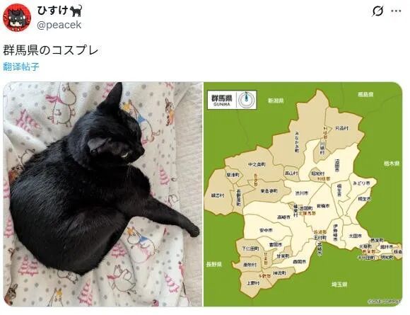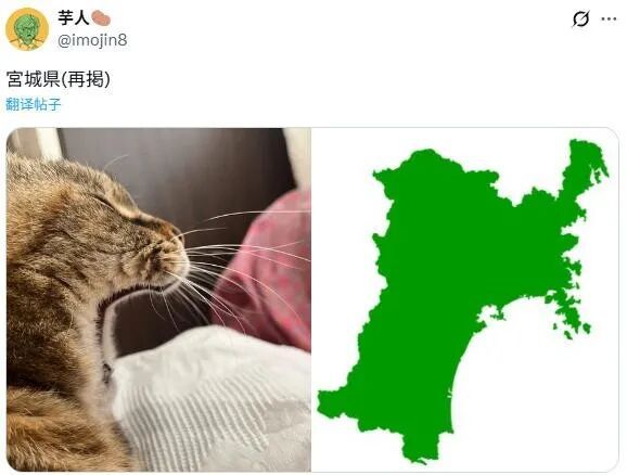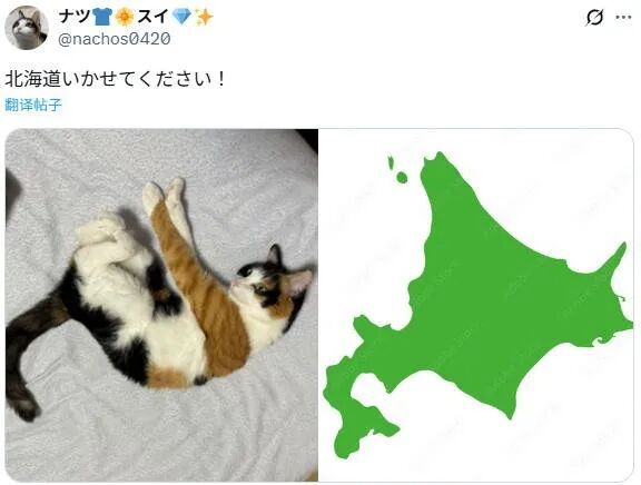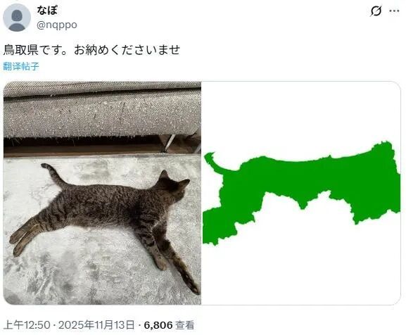 铲屎官仔细观察发现,猫咪摆的这个造型,酷似茨城县地图的形状。
