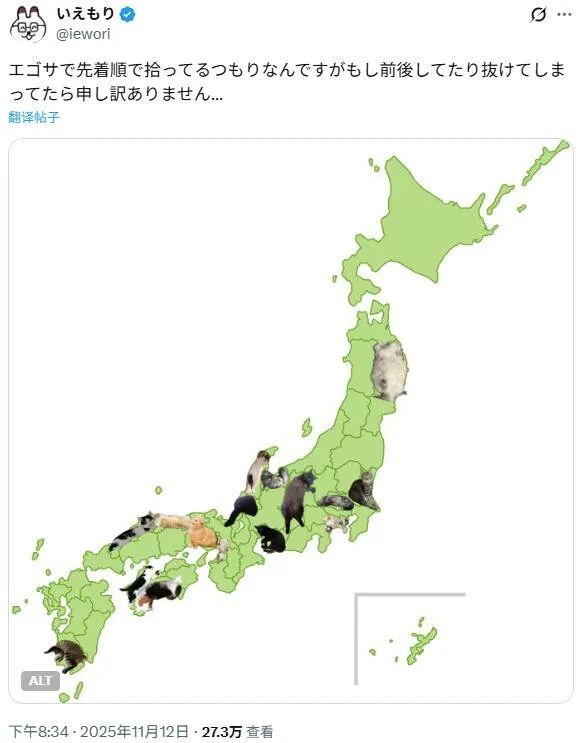 “现在大家投稿重复的地区很多……对于那些未能被收录的人,我深表歉意,因为这是按照先后顺序进行的。”(截图来自日本网友@iewori)