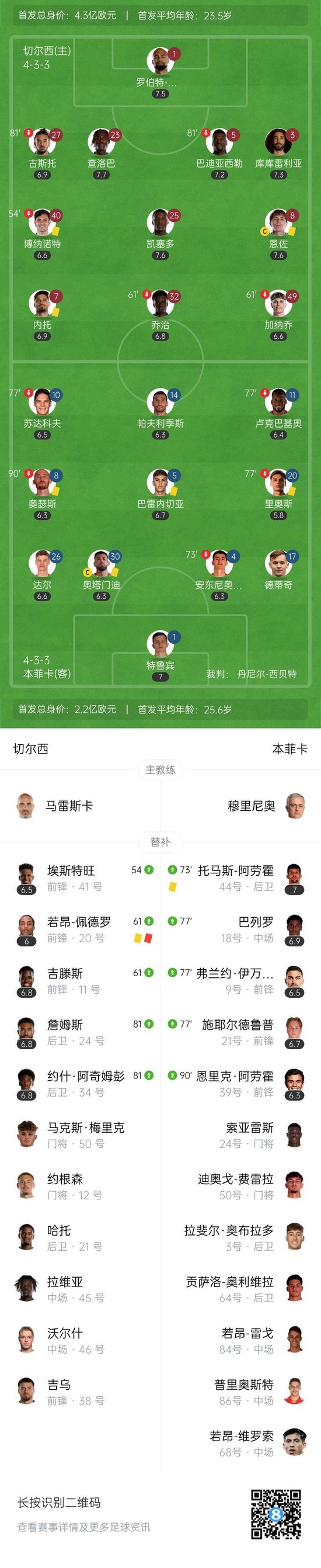 第18分钟,切尔西右路传中到后点,加纳乔高速插上左脚扫到门前!里奥斯解围自摆乌龙!切尔西1-0领先本菲卡↓