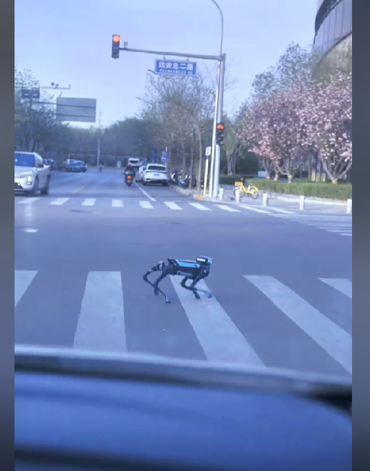 此外,在一个奶茶店,高德机器狗能自己进入店内,并告知店员要取多少号奶茶,店员将奶茶交给机器狗之后,它能自主出门并走回了高德总部。