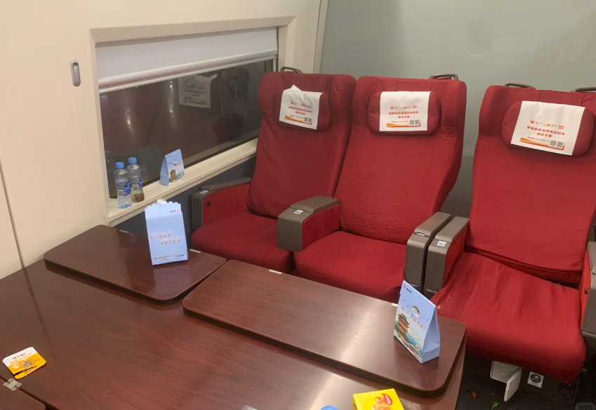 “高铁上最舒服的座位,还是鱼骨商务座,虽然私密性不如这个小包间,但座椅和腿部空间真舒服。”