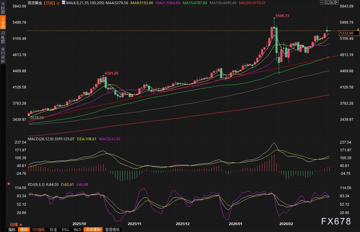 (现货黄金日线图,来源:易汇通)北京时间07:40,现货黄金现报5332.44美元/盎司。