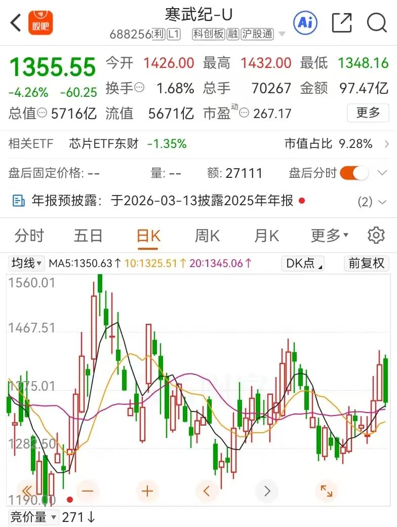 2026开盘第一天:壁仞科技港股上市现在涨了 95%市值不到 1000 亿 摩尔线程和沐曦股份承压!高盛预测寒武纪2104 元泡泡!