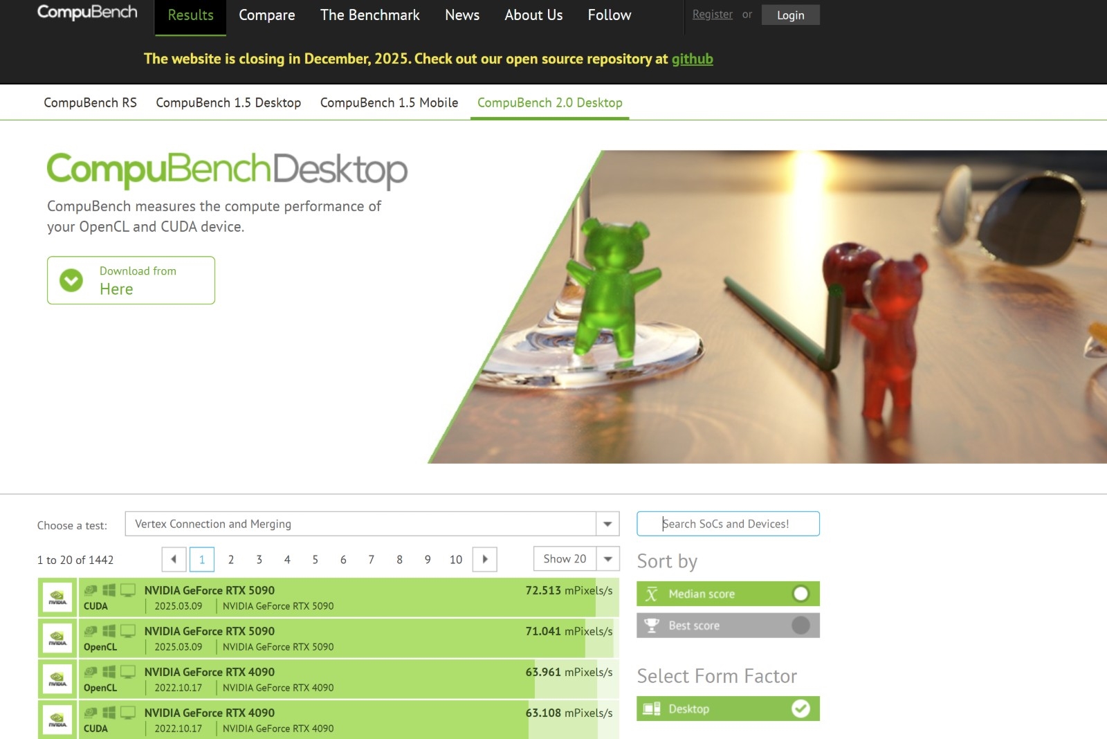 GFX Bench侧重于游戏导向,而CompuBench则更专注于3D对象渲染、视频编辑和AI图形识别等偏向生产力与开发方向的数据基准。