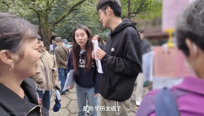 一位相亲角的阿姨注意到他「(国内)初中学历」,说他「学历太低了」,另一位阿姨看到「单身离异」,摆了下手,说:「年纪轻轻就离异了。」