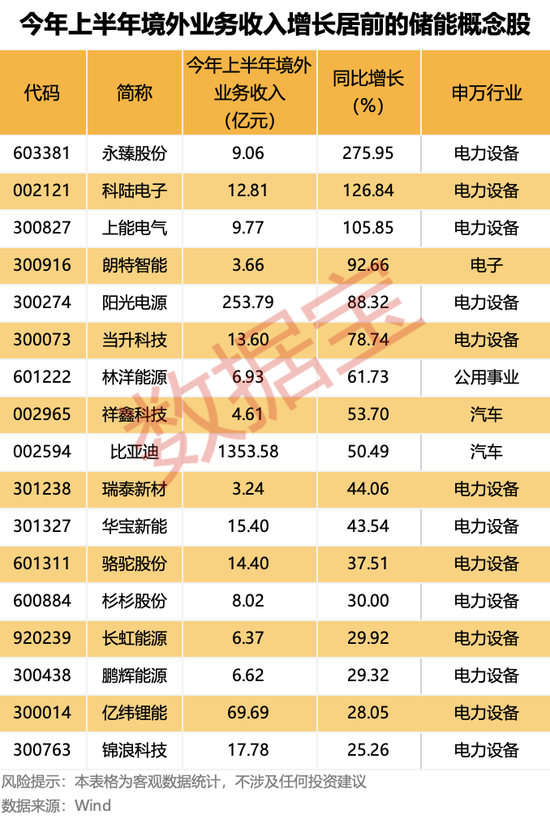 海外储能订单爆发,推动逾40家公司上半年境外收入增长。