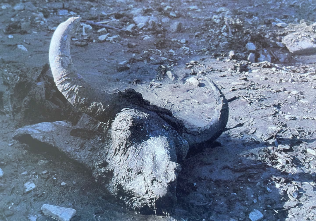 由于野牛尸体表面沾染了蓝铁矿而呈现出蓝色,这头野牛被命名为“蓝宝贝(Blue Babe )”。