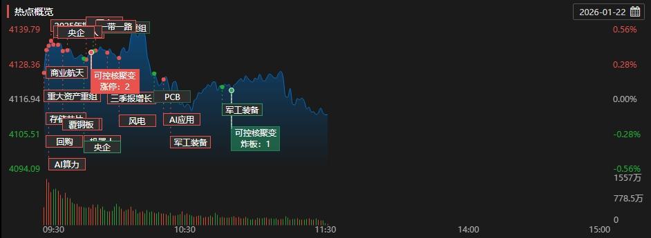 板块题材上,天然气、商业航天、军工装备、光伏设备、钢铁、煤炭、培育钻石、化学化工板块涨幅居前;贵金属、光刻机、半导体、保险、电池板块表现落后。