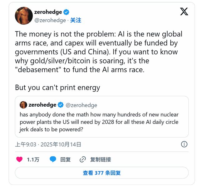 这一政策表态直接回应了市场的核心关切:为满足AI数据中心的庞大电力需求,所需的巨额能源基础设施投资从何而来。若无政府层面的强力介入,当前的AI热潮可能因能源瓶颈而难以为继。Chris Wright设定了明确目标,希望在“三年零三个月后我们卸任时”,能看到“数十座核电站处于在建状态”。