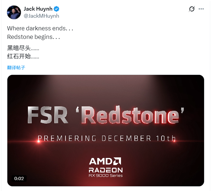 还有消息称FSR Redstone并非AMD独占,可能兼容NVIDIA和Intel的GPU,但这需要等到12月10日技术正式发布后才能确认。