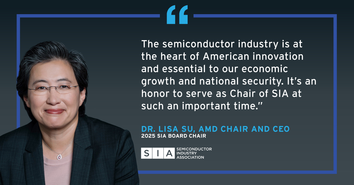 SIA总裁兼CEO John Neuffer表示:“在半导体行业充满机遇与关键挑战的当下,我们非常荣幸欢迎苏姿丰博士担任SIA主席。数十年来,苏姿丰博士不断推动半导体创新的边界,是行业内极具影响力的领军人物。”