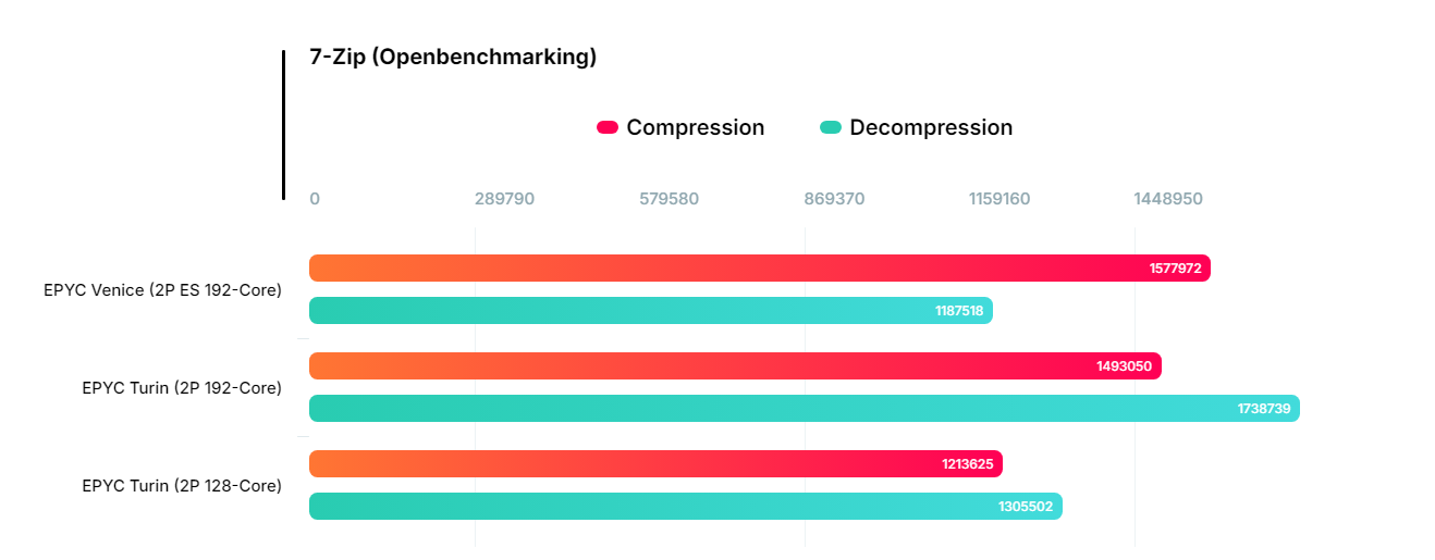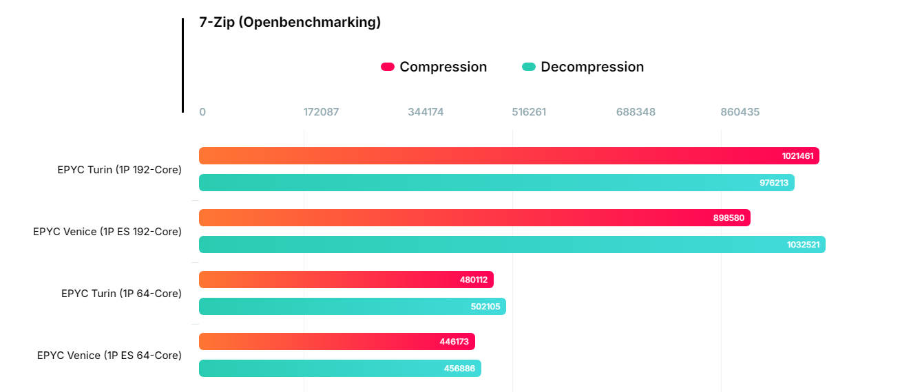 另一款100-000001863-02为64核128线程,搭配4条64GB DDR5-6400内存,两款芯片均参与了7-Zip压缩基准测试。