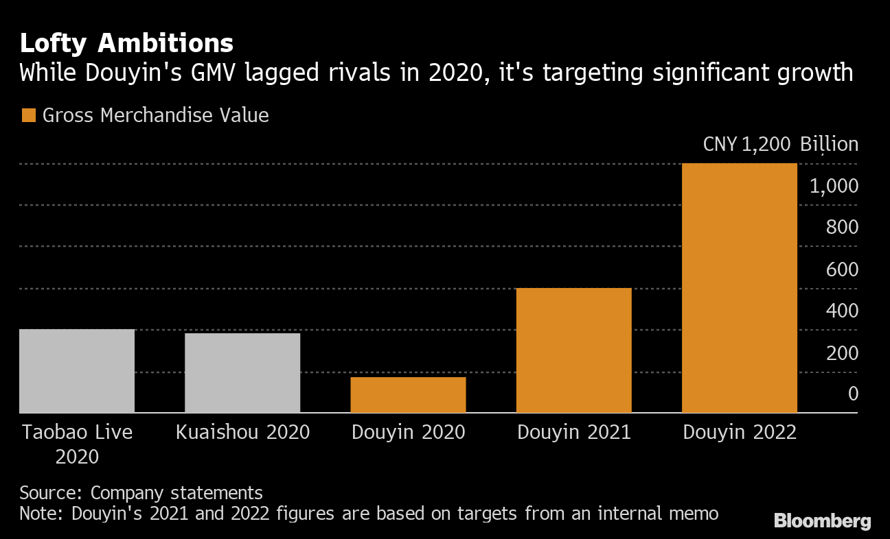 While Douyin's GMV lagged rivals in 2020, it's targeting significant growth