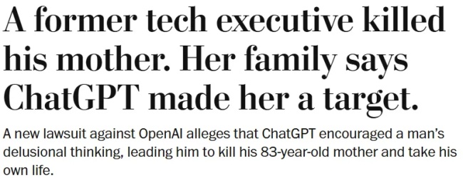 这起诉讼是美国目前日益增多的“AI致死(wrongful death)”案件之一,也是全美首起指控AI聊天机器人导致 他杀(homicide) 的诉讼。