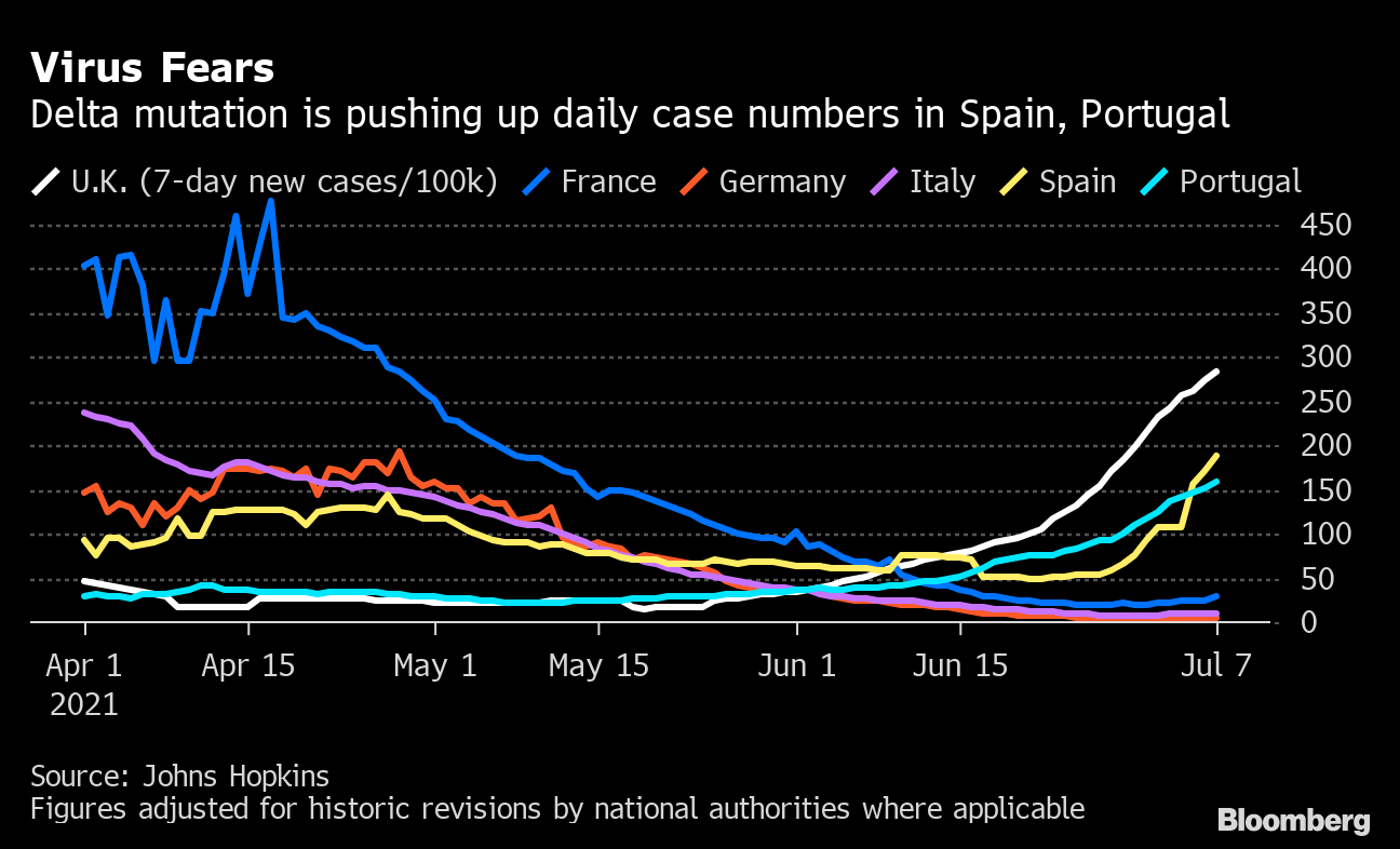 Delta mutation is pushing up daily case numbers in Spain, Portugal