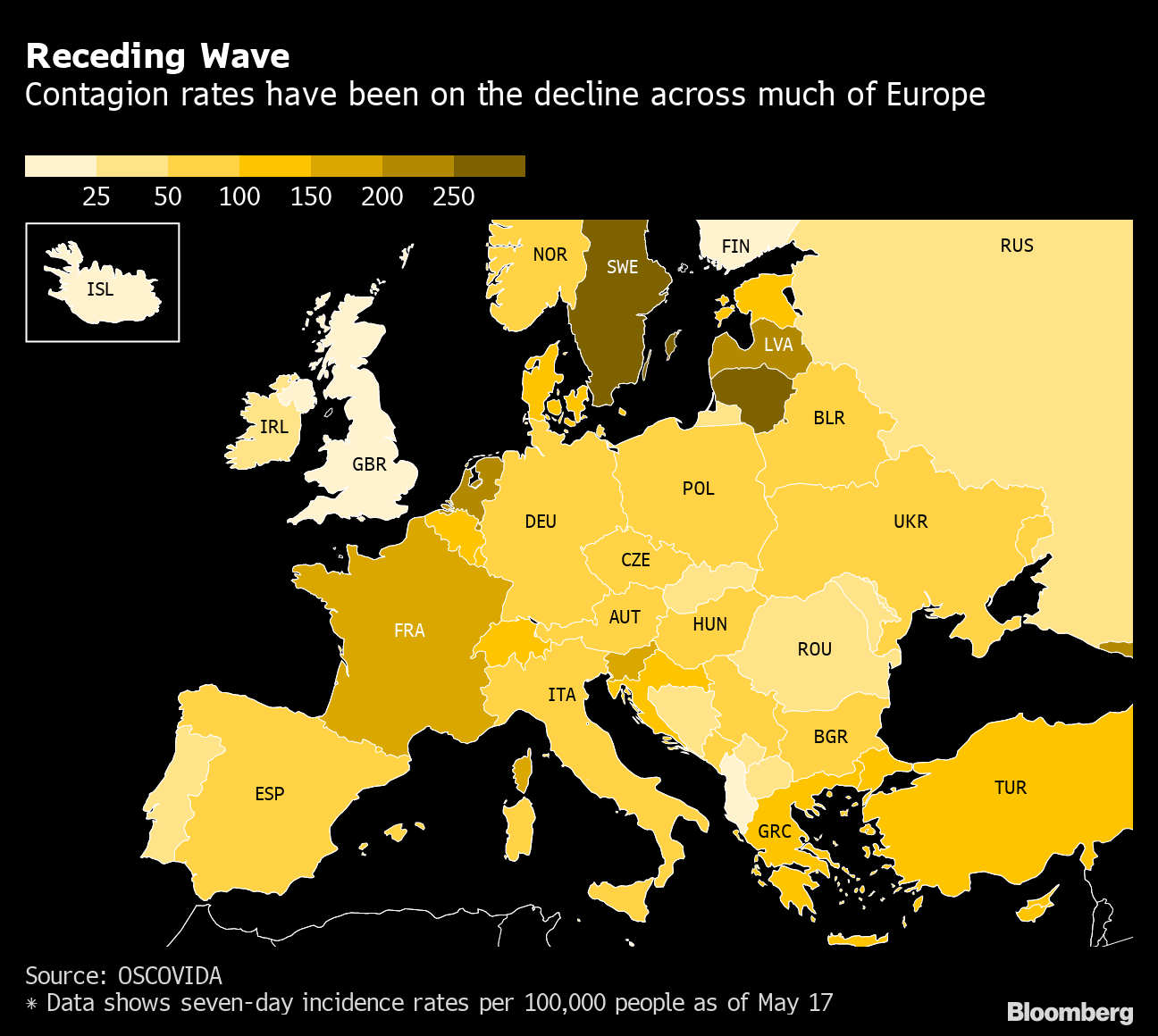 Despite the exuberance, there’s still a pall hanging over the region, which has suffered relapses more than once in its effort to beat Covid-19. As a new contagious variant that originated in India spreads rapidly elsewhere, measures to contain the disease will remain visible. In Berlin, testing will be required to dine outside at restaurants, which can reopen on Friday, and Parisian street life will be less bustling than before the pandemic.