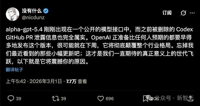 几乎在同一时间,带有“alpha-gpt-5.4”标识的公共模型端点以及下拉菜单截图在社交平台X上疯狂流传。