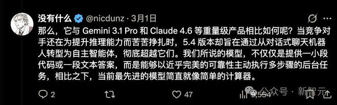 当 Gemini 3.1 Pro 和 Claude 4.6 还在各项跑分榜单上争夺小数点后几位的优势时,GPT-5.4 的野心在于完成从“聊天机器人”到“全自动代理员工”的身份转换。