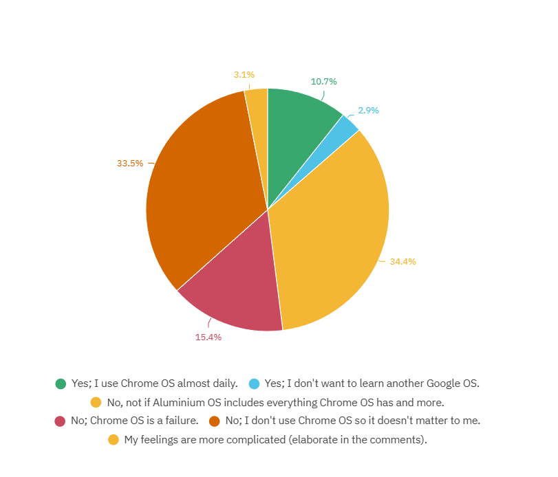 针对ChromeOS的“死亡”,知名科技媒体android authority进行了一次用户调查,结果显示,仅有17%的用户会怀念ChromeOS。
