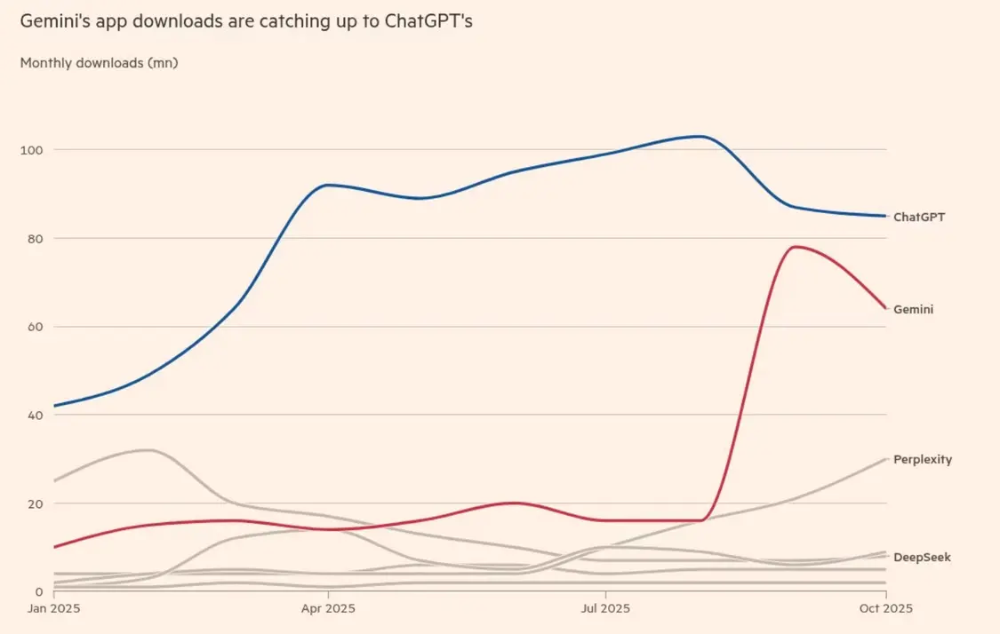 根据网站分析公司Similarweb的数据,OpenAI每周拥有超过8亿用户,在整体聊天机器人使用方面仍占据绝对主导地位,但如今用户花在Gemini上的聊天时间已经超过了ChatGPT。