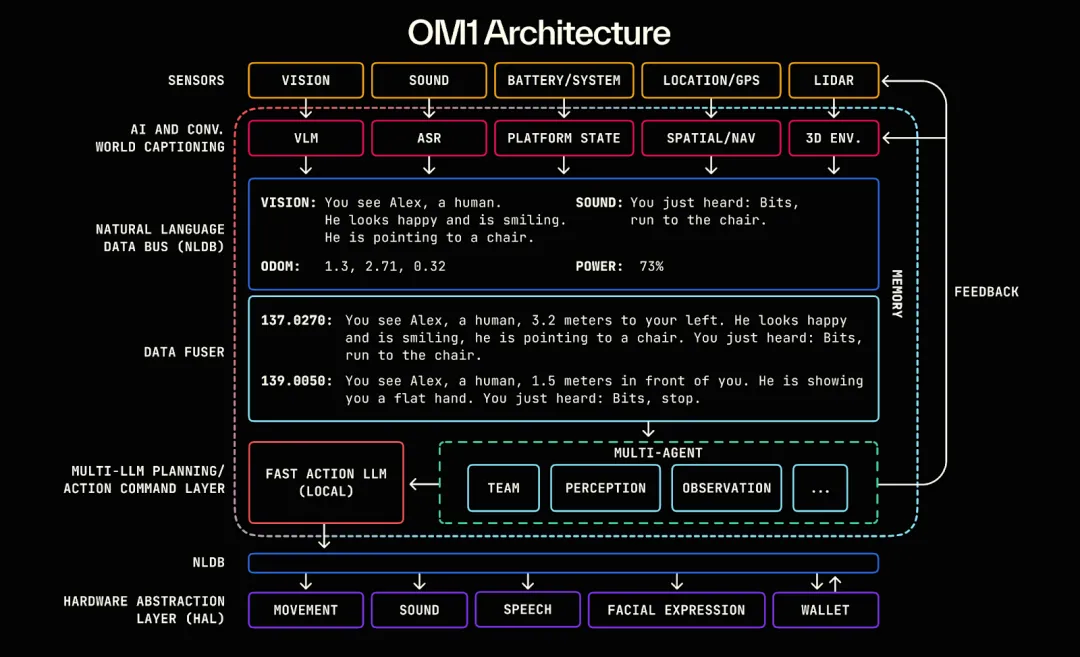 OM1:构建在 ROS2之上的模块化开源 AI 智能体运行时(AI Runtime Layer),用于编排感知、规划与动作管线,服务于数字与实体机器人;