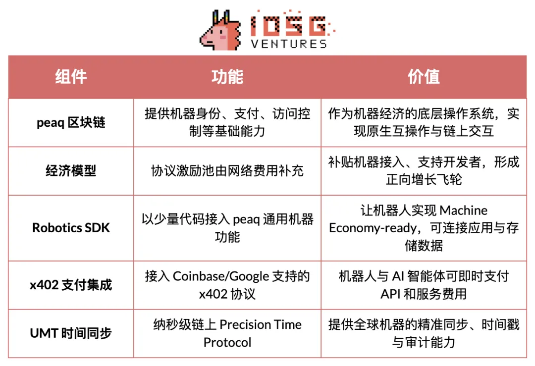 peaq 是专为机器经济打造的 Layer-1 区块链,为数百万台机器人与设备提供机器身份、链上钱包、访问控制以及纳秒级时间同步(Universal Machine Time)等底层能力。其 Robotics SDK 使开发者能够以极少代码让机器人“机器经济就绪”,实现跨厂商、跨系统的互操作性与交互。