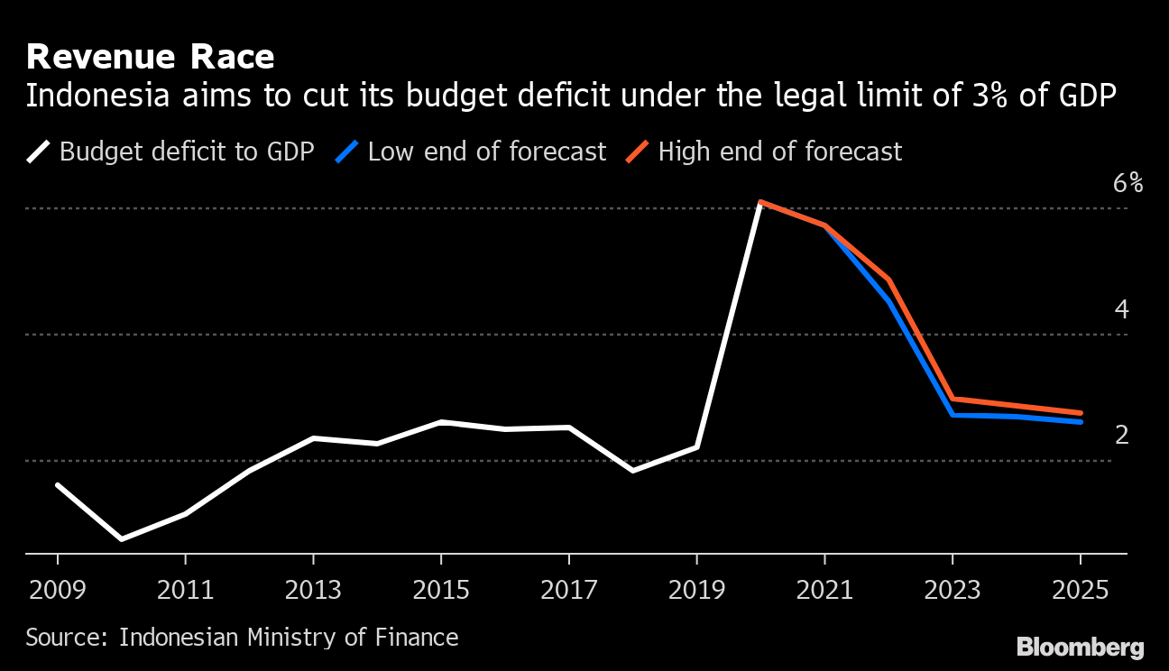 Indonesia aims to cut its budget deficit under the legal limit of 3% of GDP