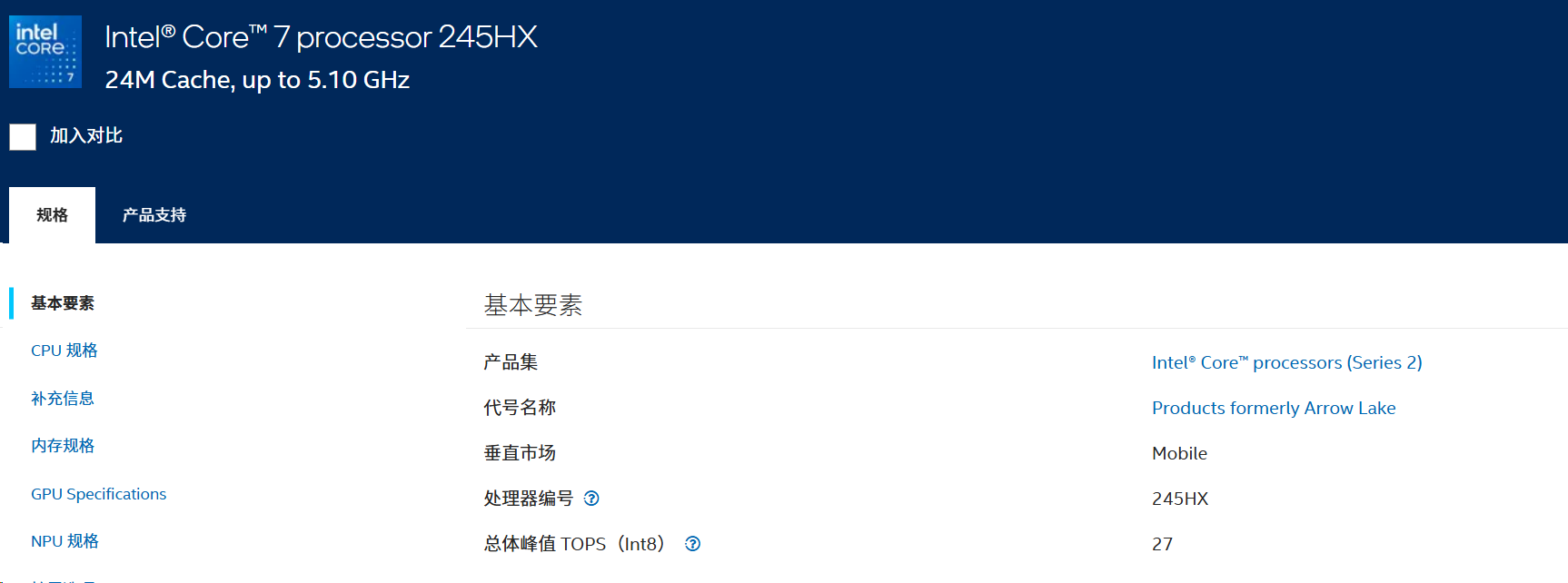 也就是说,酷睿7 245HX在规格上对齐的是Ultra 5 235HX,而非同数字的Ultra 5 245HX。