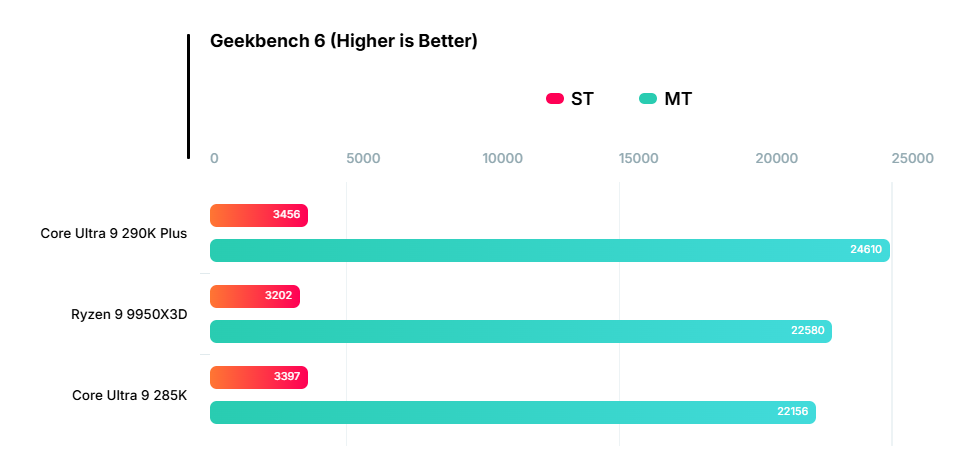与AMD目前最快的Ryzen 9 9950X3D相比,290K PLUS的单核性能提升2%,多核性能提升11%。
