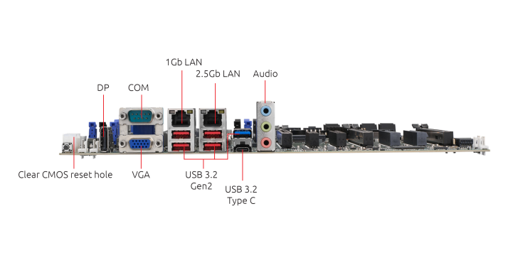 I/O接口也十分丰富,包括1个1GbE和1个2.5GbE LAN接口、10个USB 3.0接口,以及USB 3.2 Gen2 Type-A/Type-C接口等。