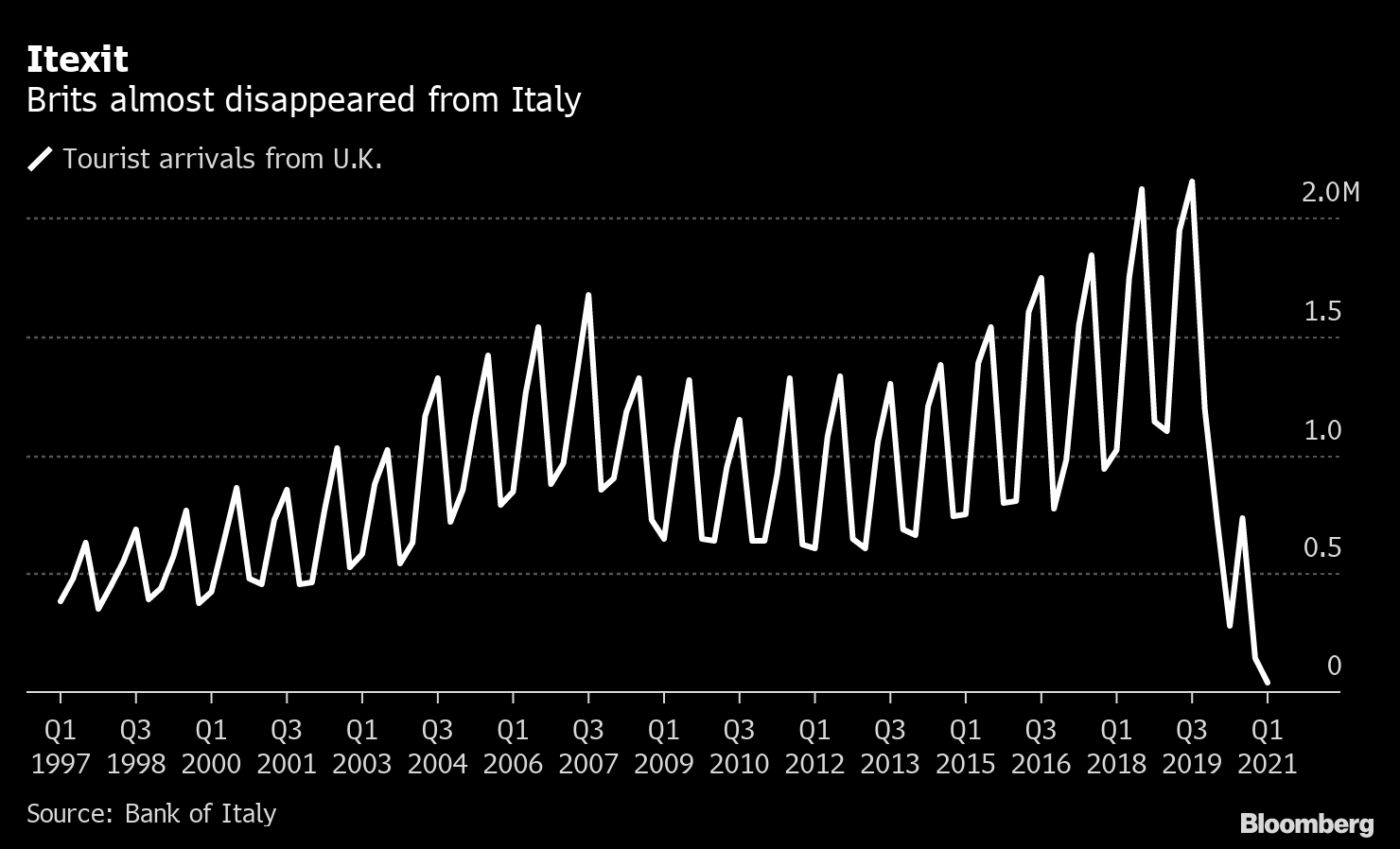 In 2019, more than 6 million Britons visited Italy, a country that relies on tourism for 13% of its economic output.