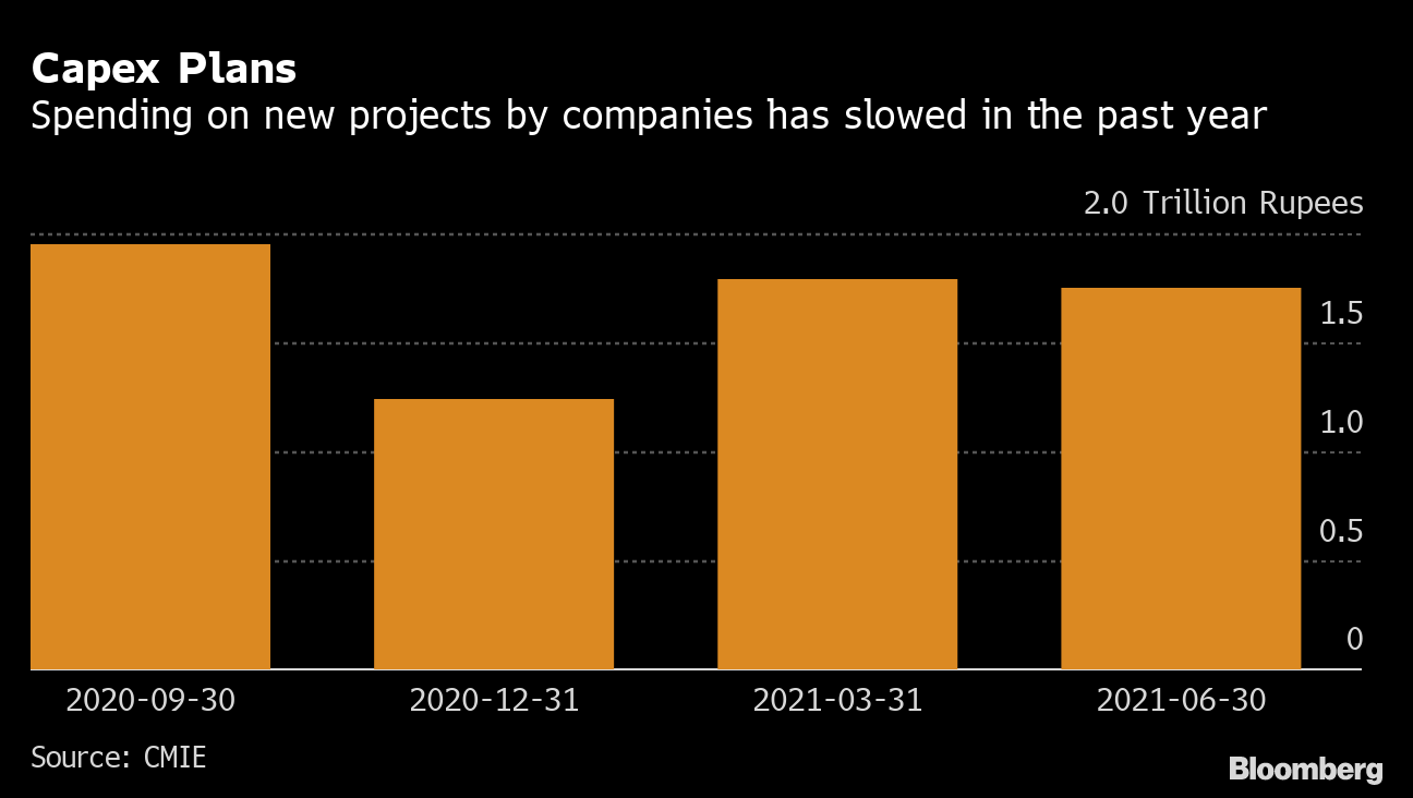 Corporate willingness for new investments is low, according to the Centre for Monitoring Indian Economy Pvt., with capital expenditure declining. While companies have posted bumper profits mostly on the back of widespread cost cutting, most have used the extra funds generated to pay down bank loans.