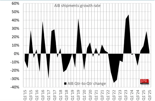 在市场份额方面,NVIDIA仍处于统治地位,但其市场份额从上一季度的94%下降了1.2%,降至92%。