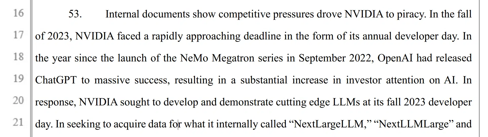 据指控,Anna’s Archive 随后明确提醒英伟达,其馆藏是通过非法方式获取并维持的,并表示此前已被其他 AI 公司“白白浪费过时间”,因此要求英伟达方面确认是否获得内部授权方可推进谈判。起诉书称,在得到这一警告仅几天后,英伟达管理层即在一周内给出了“绿灯”,同意继续推进,并获得了对 Anna’s Archive 大量盗版书籍的访问权。