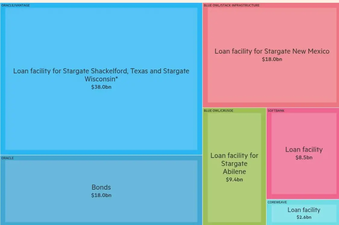 根据《金融时报》的分析,软银、甲骨文和CoreWeave已借入至少300亿美元,用于投资OpenAI或帮助其建设数据中心。投资集团Blue Owl Capital和Crusoe等计算基础设施公司也依赖与OpenAI的交易来偿还约280亿美元的贷款。