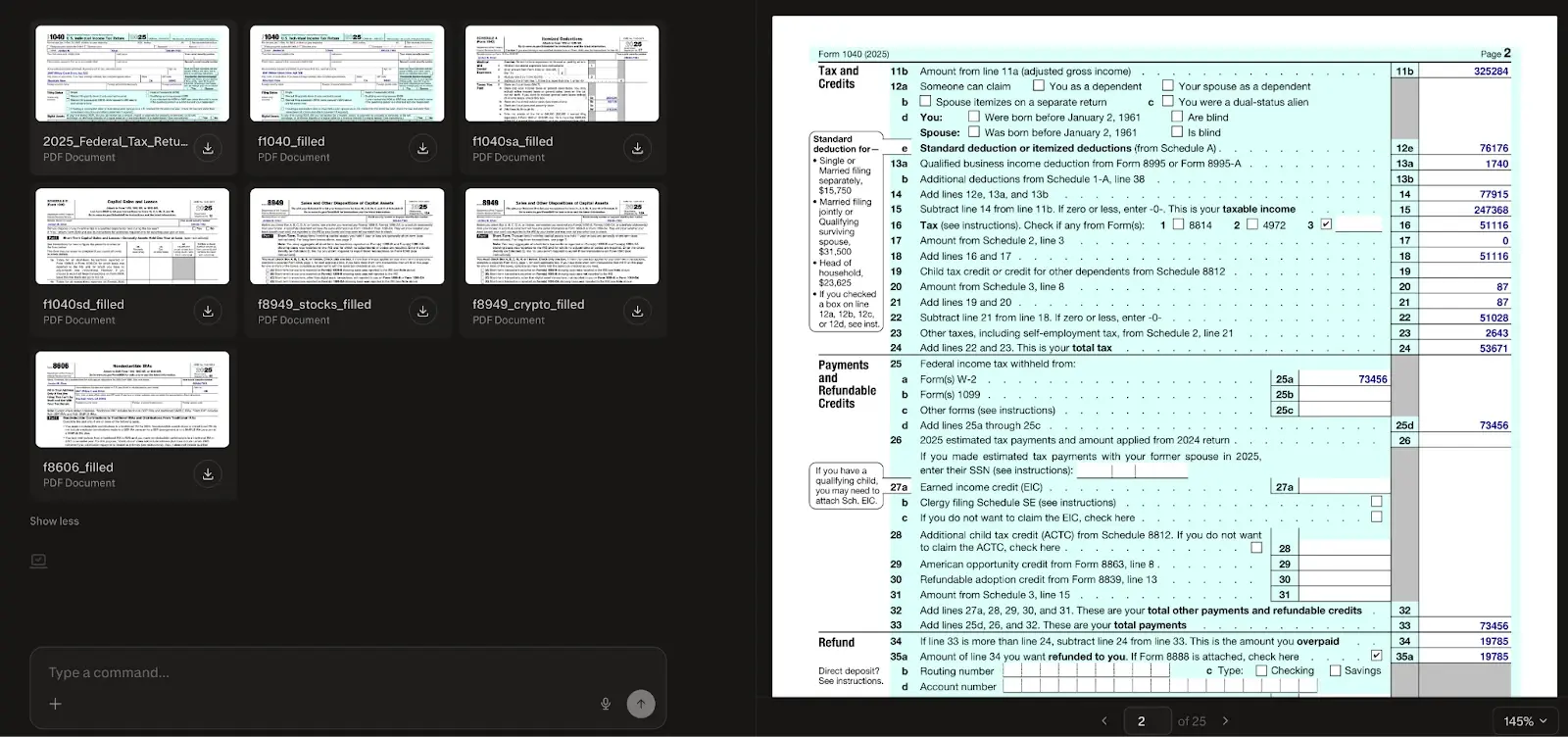 虽然传统报税多围绕纸质文件和电子表单展开,而这正是 Perplexity Computer 的强项之一,但新功能并不局限于此。用户还可以借助该系统搭建与税务相关的电子表格、应用程序乃至网站。例如,它可以为企业开发用于跟踪折旧与各类费用的软件工具,将创业公司股权数据导入模型以评估行权决策,或为持有多处出租房产的个人创建仪表盘,在“被动亏损规则”框架下更直观地管理各类扣除。