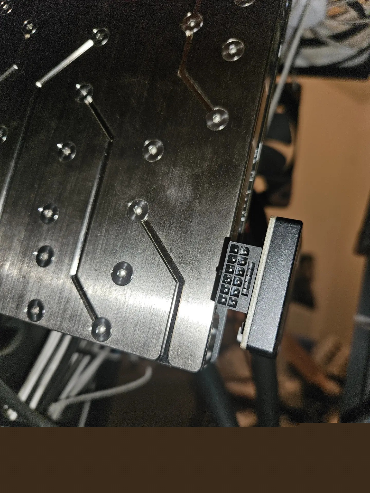 幸运的是,显卡和海盗船1600W电源的供电接口都安然无恙,只有检测器壮烈了。