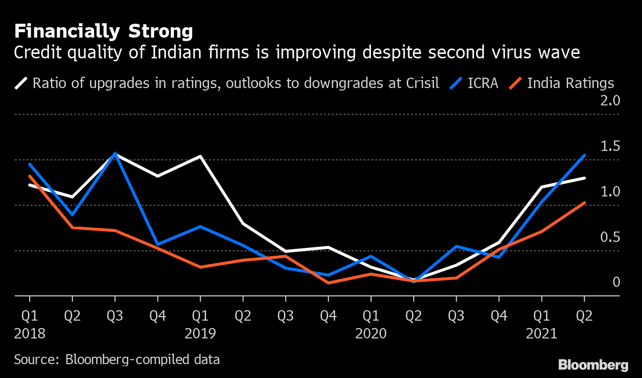 • “Local companies are facing fewer downgrades during the second wave of the pandemic than during the first wave as most of them have bolstered their liquidity in the past couple of quarters, thanks to all the pandemic support announced by policymakers,” said K. Ravichandran, a deputy chief rating officer at ICRA Ltd., a local unit of Moody’s
