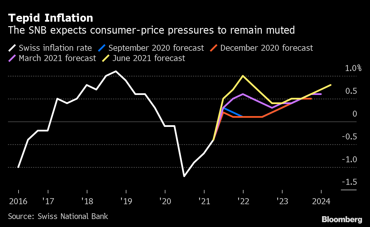 “The SNB is not impressed by the current bout of inflation and sees it just as temporary,” said Alessandro Bee, an economist at UBS AG in Zurich. “The SNB doesn’t see any inflationary risks, not even in the long term. So a rate hike is off the table for years.”