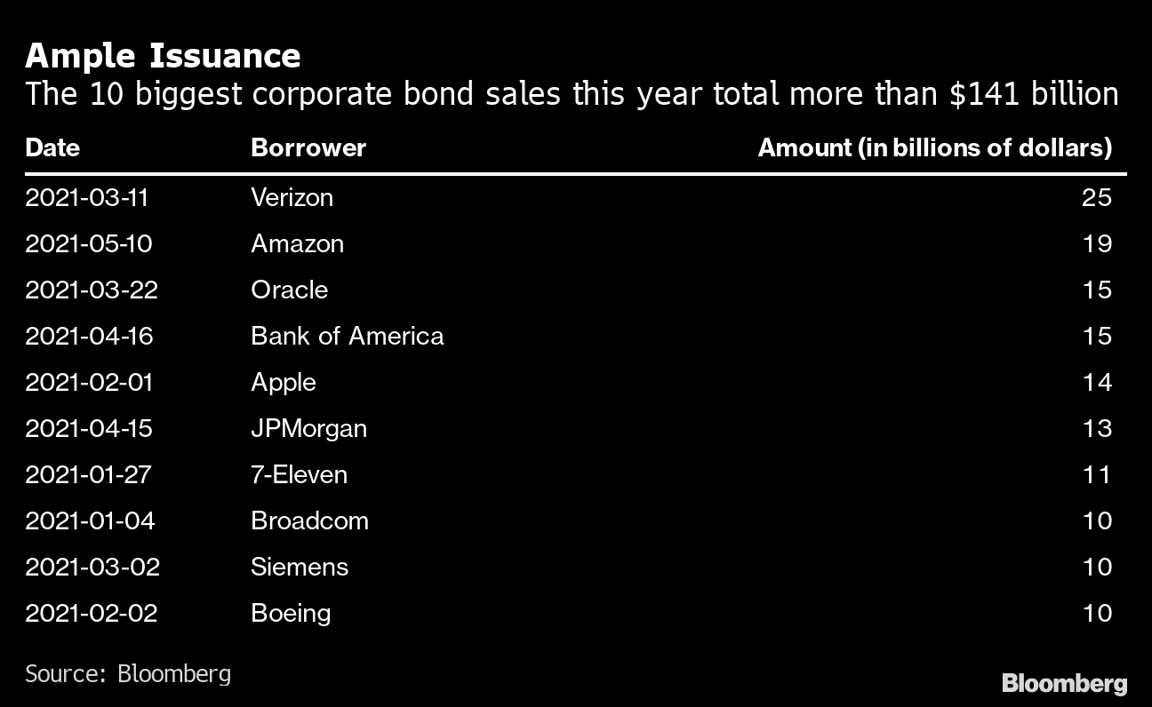 The 10 biggest corporate bond sales this year total more than $141 billion