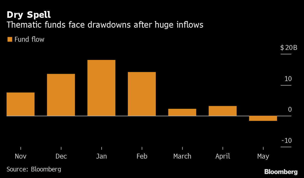 The $160 billion boom in thematic funds is fizzling out fast as investors pull back from Wall Street’s most speculative bets.