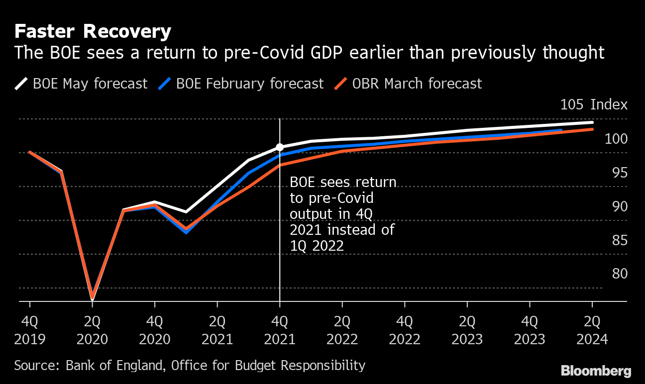 The BOE sees a return to pre-Covid GDP earlier than previously thought